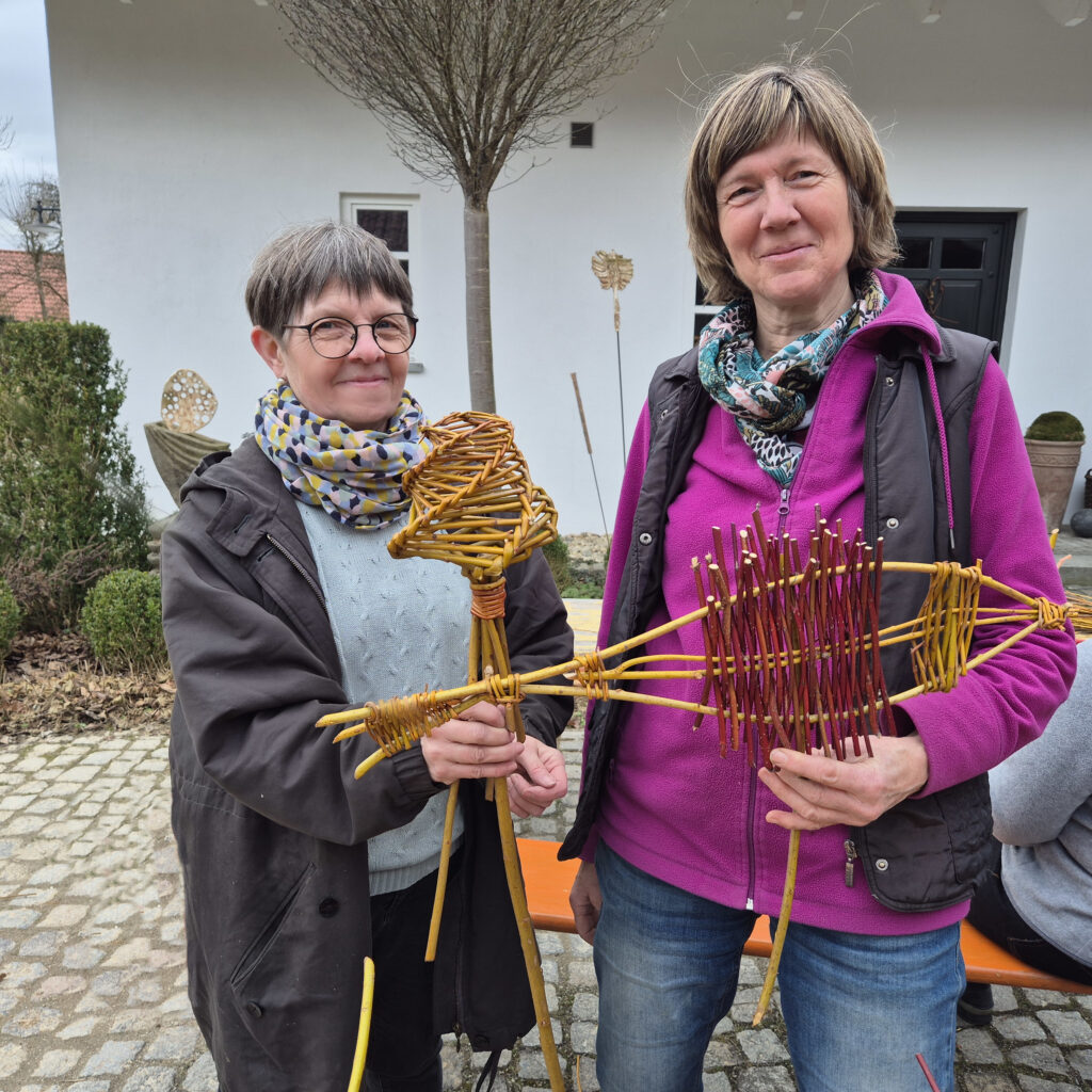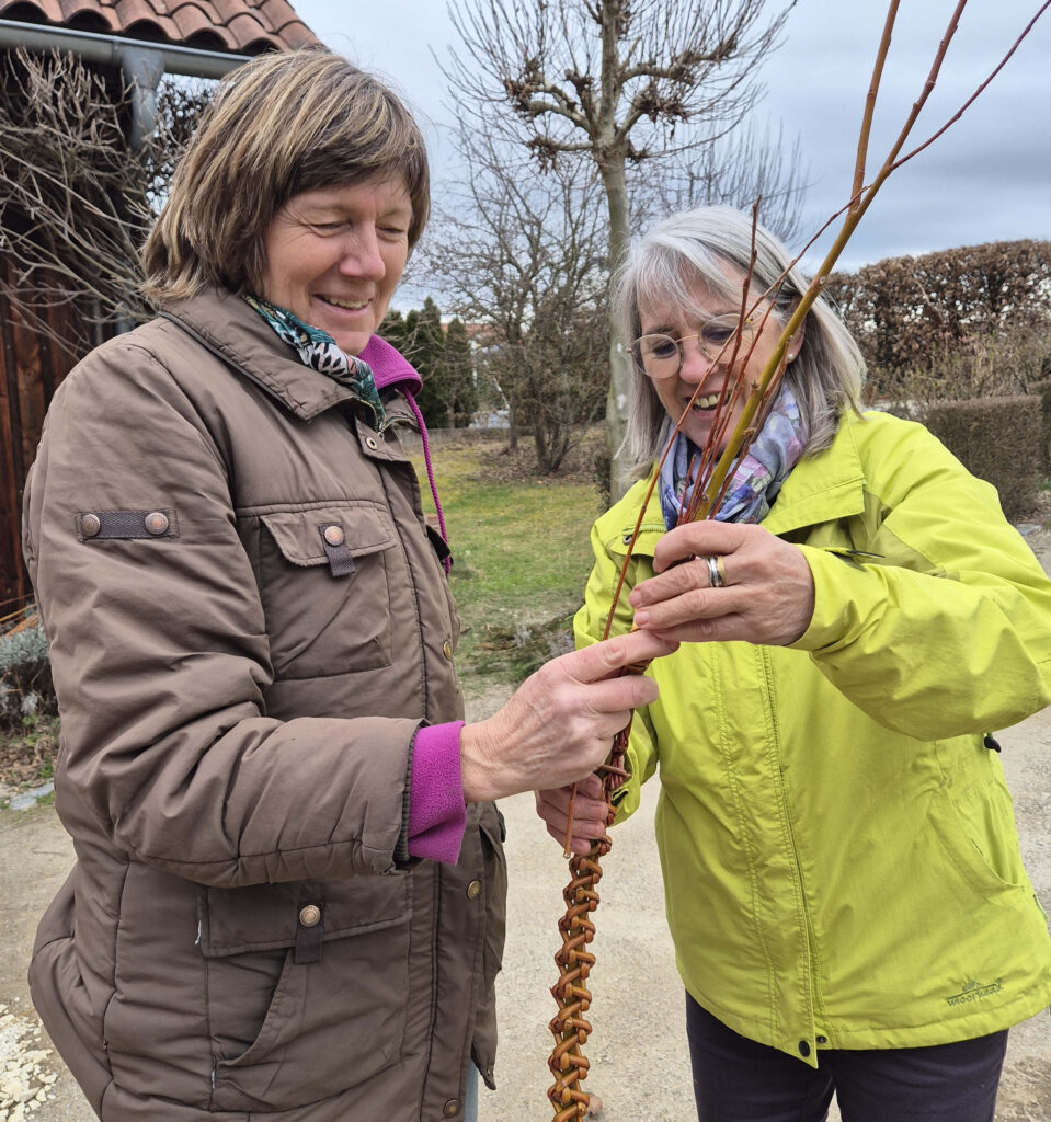 Mit flinken Fingern, großem Geschick, Kreativität und Geduld gestalteten auch dieses Jahr die Teilnehmerinnen des Weidenflechtkurses zahlreiche attraktive Gartenobjekte. Maria Steinhauser unterstützte die eifrigen Flechterinnen mit ihrer jahrelangen Erfahrung und stand mit mit erprobten Techniken und wertvollen Kniffen hilfreich zur Seite.