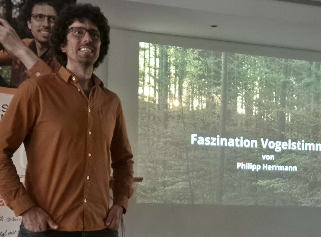 Tausenden Menschen hat er schon geholfen, die Vogelstimmen in deren Umgebung zu bestimmen. Endlich kam er zu unserer Freude nach Rottenburg! Der Bürgersaal war voll belegt mit Vogel- und Naturfreunden als Philipp Hermann anschaulich und kurzweilig eine Auswahl heimischer Vögel vorstellte und erklärte, wie sie anhand ihrer einzigartigen Stimme erkannt werden, bevor man sie entdeckt.