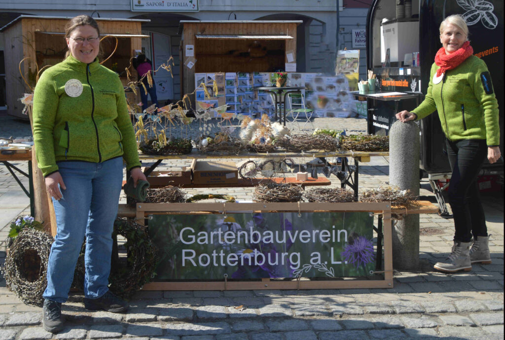 Gemeinsam mit dem Bund Naturschutz, der Stadt Rottenburg und dem Gewerbeverein entstand die Idee, den Gedanken der Biodiversität während des Marktes sichtbar werden zu lassen. Seit Jahren kümmert sich die Ortsgruppe des Bundes Naturschutz unter Leitung von Franz Gumplinger um den Erhalt, die Pflege und das Setzen von Korbweiden und wird dabei von der Stadt Rottenburg und der Umweltreferentin Veronika Oberpriller tatkräftig unterstützt. Korbweiden zählen zu den prägenden Elementen unserer Kulturlandschaft rund um das Laabertal und erfüllen wichtige ökologische Funktionen, z.B. als Lebensraum für zahlreiche gefährdete Tier- und Pflanzenarten. Um sie langfristig zu erhalten, ist ein regelmäßiger Schnitt der Ruten erforderlich.